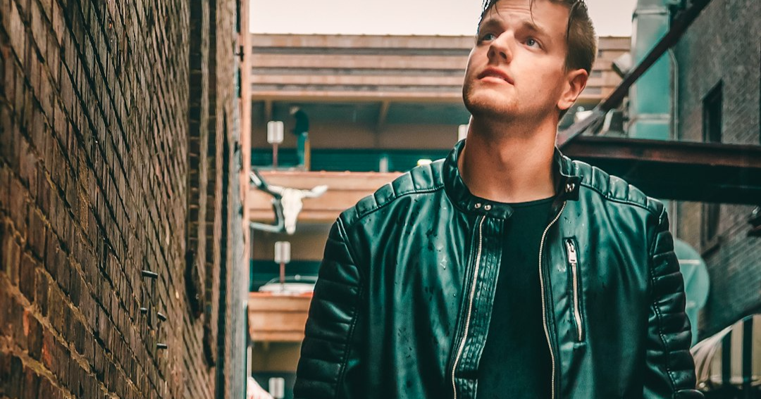 Dark leather jacket with ripped jeans